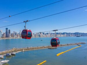 Sobre esta atividade: Um dos símbolos do Parque Unipraias são os 47 modernos bondinhos aéreos que interligam três estações, conectando o lado sul da orla de Balneário Camboriú ao Morro da Aguada e descendo até a praia de Laranjeiras, sendo o único no mundo a ligar duas praias. Em seus 202 mil m² de área total, dos quais 132 mil m² são de preservação, o parque oferece atrações para todos os gostos e idades, atendendo tanto os que buscam admirar os cartões-postais quanto os que procuram aventura e adrenalina.