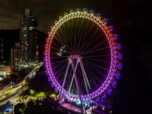 Roda Gigante de Balneário Camboriú – Vista Panorâmica Deslumbrante:Embarque em uma jornada emocionante e panorâmica na famosa Roda Gigante de Balneário Camboriú. Suba a bordo desta icônica atração e deixe-se levar pelas alturas, enquanto contempla vistas espetaculares da deslumbrante paisagem costeira e da cidade abaixo. Sinta a brisa do mar acariciar seu rosto enquanto você desfruta de momentos de pura admiração e diversão.