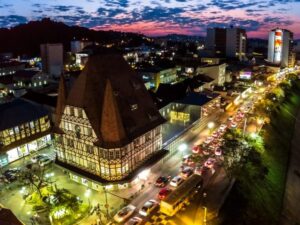 Em Blumenau, a capital da cerveja e lar da famosa Oktoberfest, exploraremos pontos turísticos emblemáticos, como a Avenida Beira Rio, a Prefeitura e a encantadora Ponte de Ferro. Uma parada imperdível na Vila Germânica, palco de eventos grandiosos como a Oktoberfest e a Magia de Natal, oferecerá tempo para passeios e almoço (não incluído), em meio a casarios coloridos com influências germânicas.